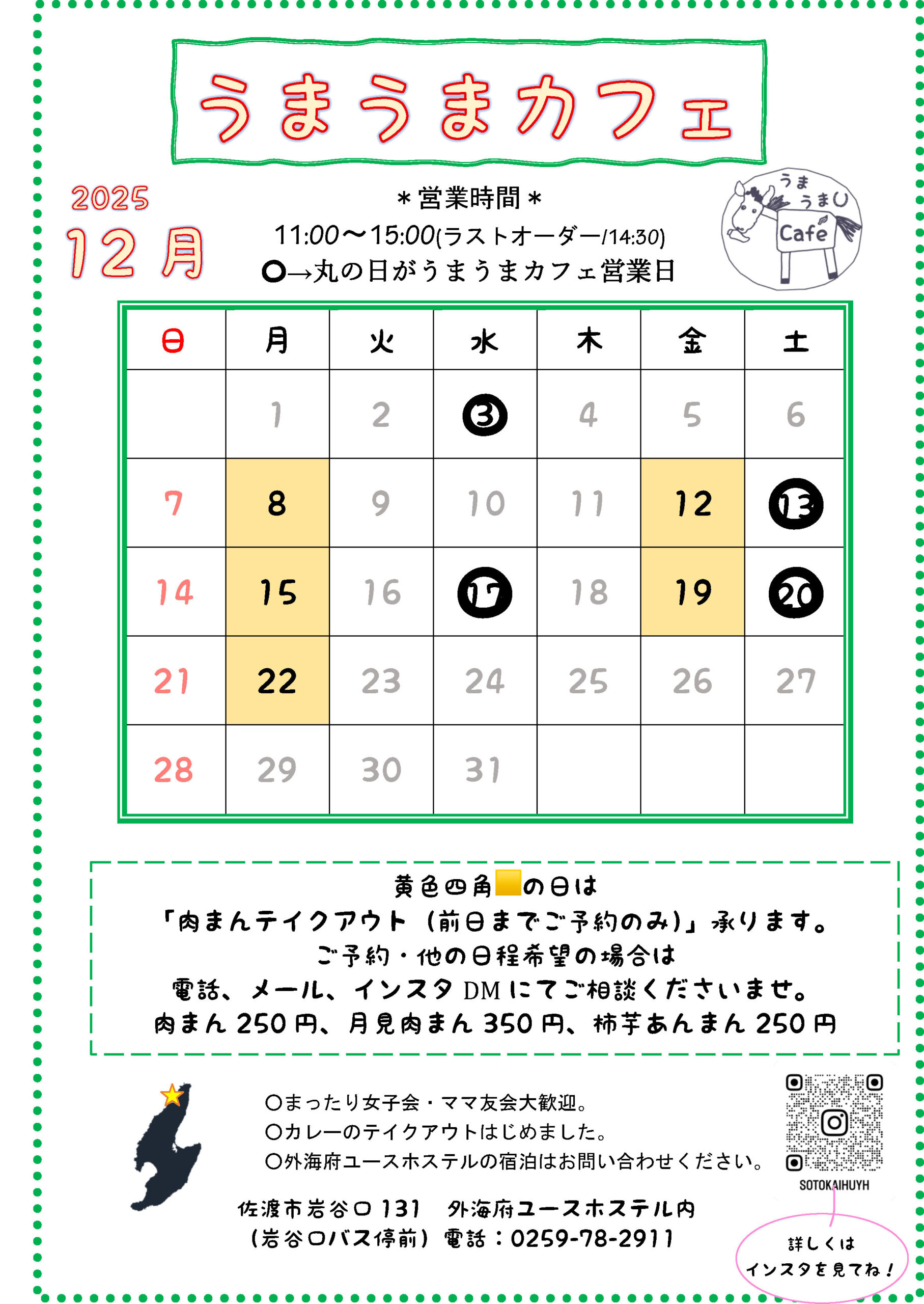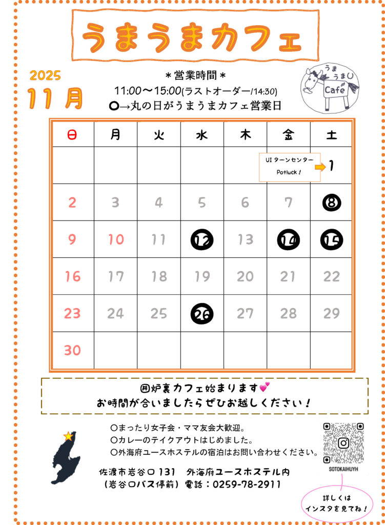 うまうまカフェも11月より「囲炉裏カフェ」に変更いたします。